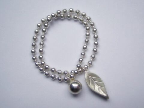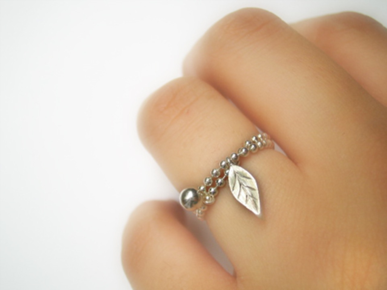 小さな葉っぱと実がゆれて、手元を華奢に可愛らしく見せてくれます。ボールチェーンのリングはガーリーな雰囲気を演出してくれるので、カジュアルにもガーリーにも。