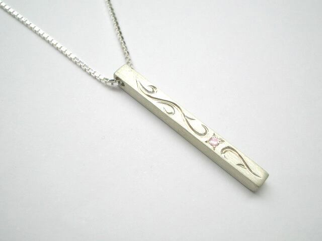 手彫りアラベスクとピンクダイヤのスティックネックレス[TOP4PD]